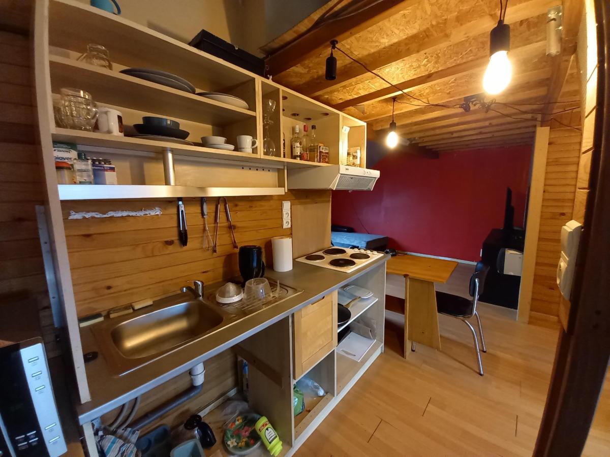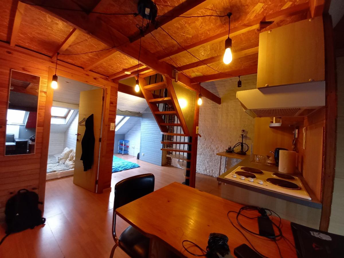 Appartement 50m² : séjour avec kitchenette non-équipée, chambre, WC avec lavabo